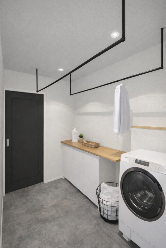 家事ラク動線と大容量収納を備え、毎日の暮らしをスムーズに整えながら、デザイン性にも妥協しない住まいを実現しました。