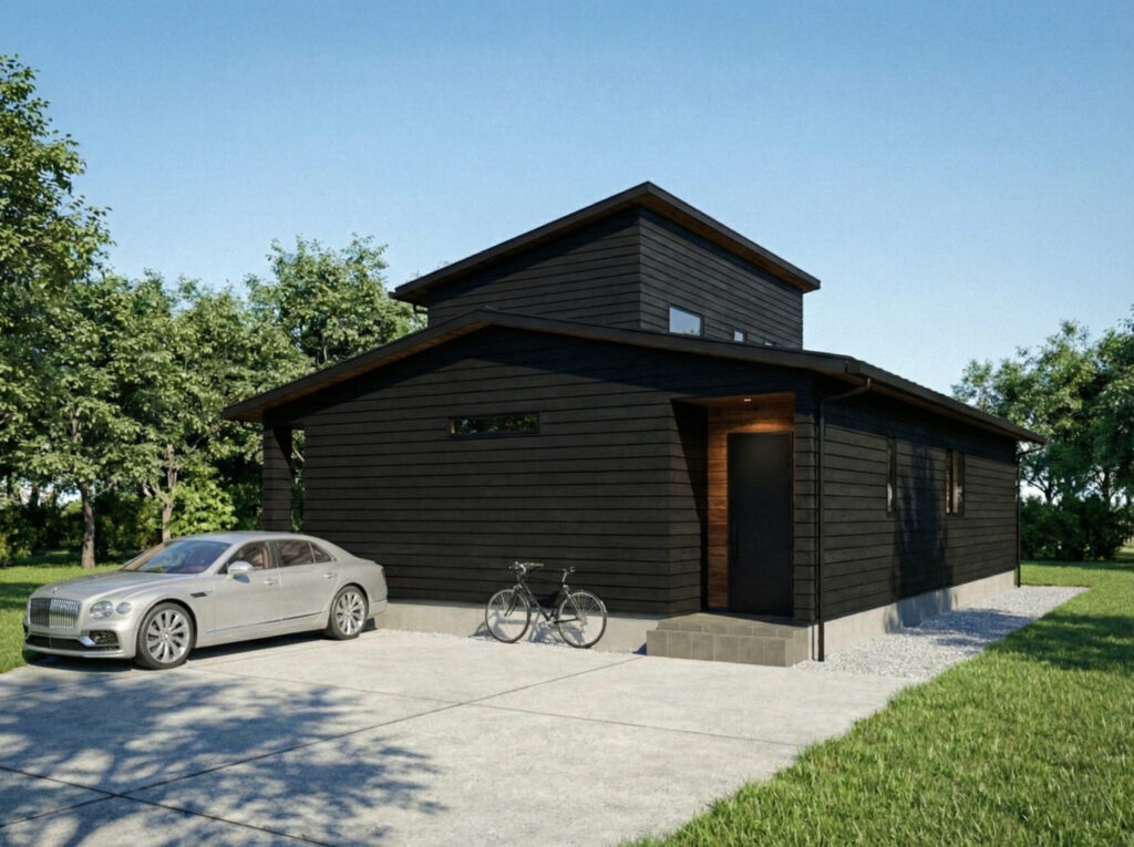 外観には当社初採用のゼオン化学「樹脂サイディング」を採用し、シャープで上質な印象に。