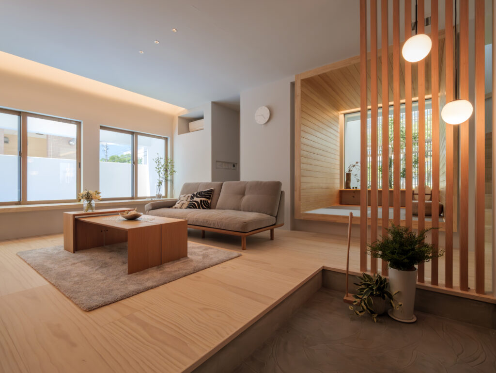 大きな窓から差し込む光と、木の質感を取り入れた温もりのある空間が、家族の暮らしに寄り添います。